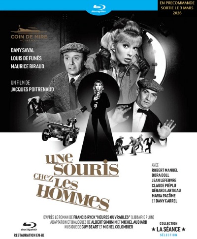 ![]() Год: 1963 Название: Мышь среди мужчин Оригинальное название: Un drole de caid Производство: Франция / Filmsonor S.A., Francos Films, Mondex Films, Procinex Жанр: комедия, криминал Режиссер: Жак Пуатрено Актеры: Луи де Фюнес, Дани Саваль, Морис Биро, Робер Мануэль, Дора Долл, Жерар Лартиго, Жан Лефевр, Клод Пьеплю, Мария Паком, Дани Каррель, Мадлен Клерванн, Андре Баден, Эвелин Дассас, Жак Легра Описание: Адаптация романа Фрэнсиса Рика "Рабочие часы" (1963)... Марсель и Франсис производят впечатление добропорядочных граждан. Марсель владеет собственным кафе, у Франсиса тоже есть работа и семья. Но никто не знает, что на самом деле объединяет двух друзей. А дело в том, что они вместе подрабатывают кражами. Однажды во время ограбления квартиры владельца трикотажного магазина их заметила его соседка Люсиль... ![]() Продолжительность: 01:30:23 Качество видео: BDRip AVC | Исходник TestM Перевод: профессиональный многоголосый (ТПО РедМедиа), профессиональный двухголосый Язык озвучки: русский, французский Субтитры: английские Видео: AVC/H.264, 960x576, ~3818 Kbps Аудио 1: AC3, 2 ch, 192 Kbps | русский (MVO ТПО РедМедиа) Аудио 2: AC3, 2 ch, 192 Kbps | русский (DVO) Аудио 3: AC3, 2 ch, 192 Kbps | французский Время раздачи: десять дней | |